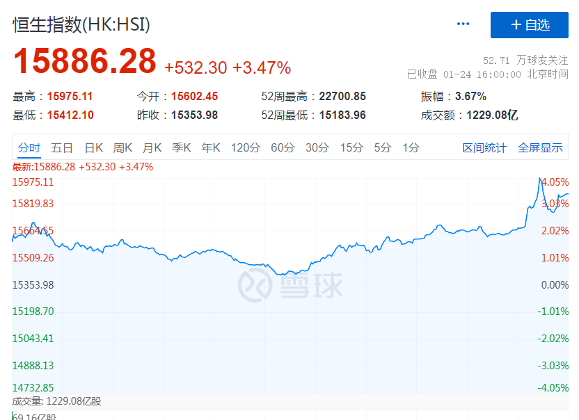 A50涨幅扩大至2%,恒生指数、恒生科技指数涨幅一度扩大到4%、5%!